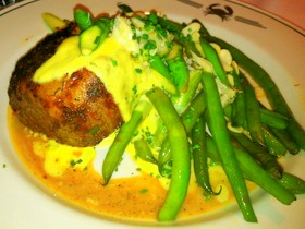 Despite its devotion to the sea's bounty, Truluck's offers a wide selection of steaks, chicken and chops, and also a vegetarian option. The filet of beef Oscar, a 5 or 8-ounce center-cut topped with a rich (very rich), jalapeno-heated Béarnaise sauce, lump crab and shaved asparagus, with Parmesan-mashed potatoes on the side, truly offers a lesson in the right way to grill meats. The buttery, pink meat slices with ease and all but melts in your mouth. Although the steak is delicious by itself, the addition of the jalapeno Béarnaise, the asparagus and crab create the classic "Oscar" dish that has been beloved by gourmets for more than a century.