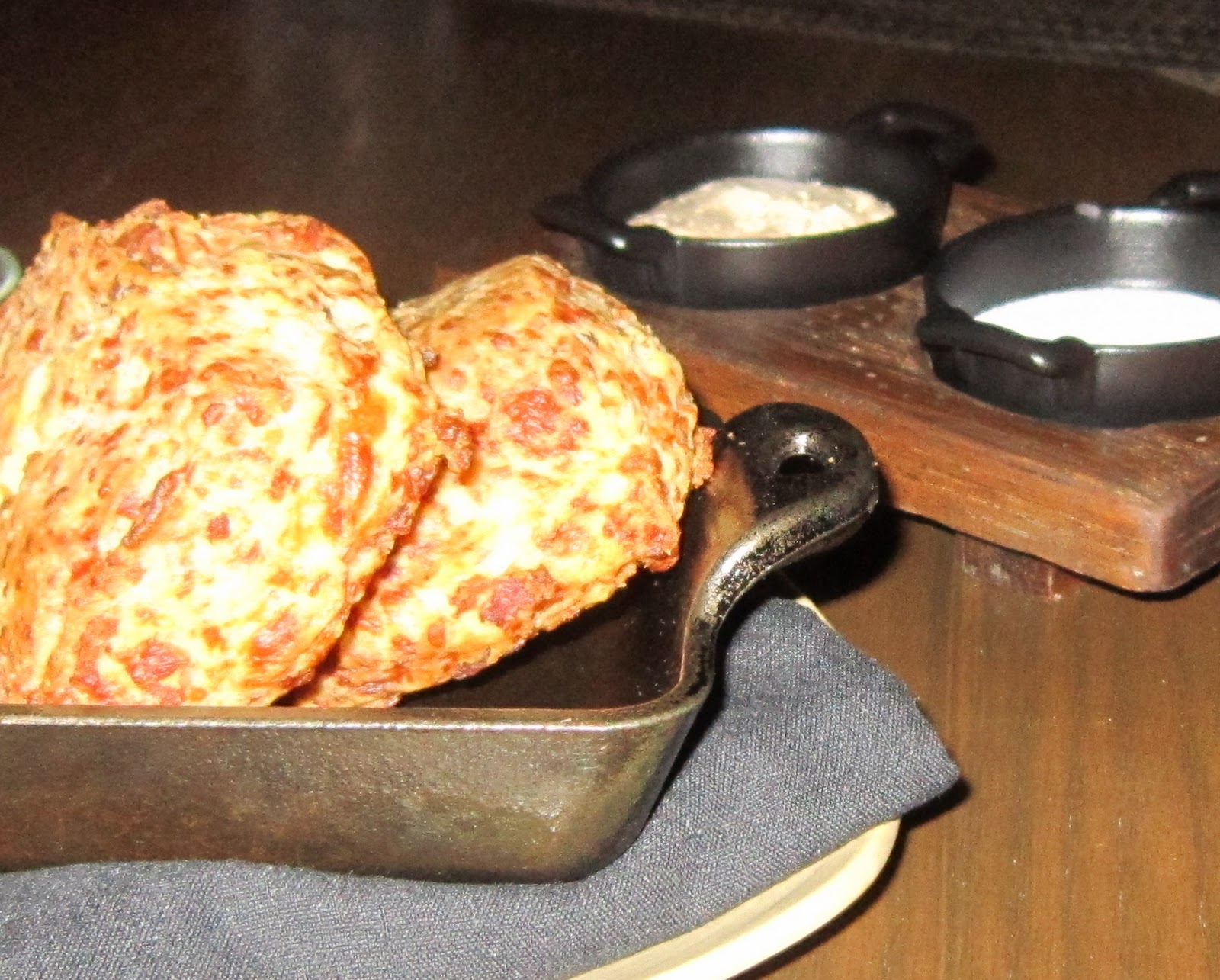 After indulging in all of this food, you could imagine my surprise when a chef came to my table with a whole chicken on a huge frying pan! “Is this pleasing to you, Miss?” Um, yes! The whole roasted truffle chicken ($38), moist and truffle-y like I like it, returned to the table quartered, and accompanied by yet another smorgasbord of sides! We had the mac and cheese and cheese (and cheese and cheese and crispy bread crumb top!) ($5); roasted cauliflower with pine nuts ($5); more fresh and crispy asparagus; and my date’s favorite of the night: bacon cheddar biscuits with maple chili butter ($4). If you find yourself at Restaurant 1833 with heartwarming bourbon and in need of a chaser, do yourself a favor and allow yourself the pleasure of these comfortingly fluffy and flavor-packed biscuits. Mmmmmm.