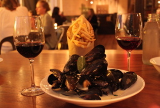 The mussels ($13.75) come piled high, and bathing in a white wine, garlic, aioli and lemon sauce, a clean and refreshing light and milky broth. While the frites that accompanied the mussels were delicious, topped with shaved garlic and lemon, I would have preferred thick-cut, spongy bread to sop up that amazing broth. Wash down the mussels with Buena Vista’s 2007 pinot noir ($10) or Dona Paula’s 2009 Malbec ($9) and call me in the morning. By the way, PK offers half-glasses of wine, and the servers are well-versed in the vintages offered and knowledgeable of pairings, so do not hesitate to try several wines, perfectly paired to each course.