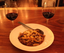 As though we were not yet satisfied, we tried the lamb sugo ($16.75) a beautiful sauce tossed with perfectly al dente house-made fussili pasta, insanely tender chunks of lamb, bitter grilled radiccio, caramelized onions, parmesan, and tiny but thick triangles of smoked pancetta, a much preferred alternative to the ever-popular chorizo. While the sugo is, I’ll say it again, light, refreshing, and flavor-packed, this would make for a comforting dish on a brisk San Diego evening, especially paired with a bold wine such as Smith & Hook’s 2010 cabernet ($10) or Shebang’s zinfandel blend ($10).