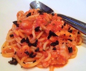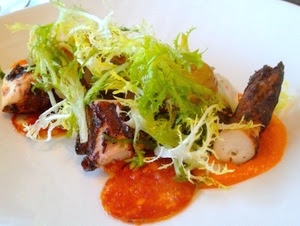 The grilled octopus salad ($13.50) with flavorful romesco spread, purple potato rounds, and house cured chorizo, highlighted the octopus which was braised, then quickly sautéed with ginger, onion, and garlic, and deglazed with honey and red wine, making for extremely tender bites.