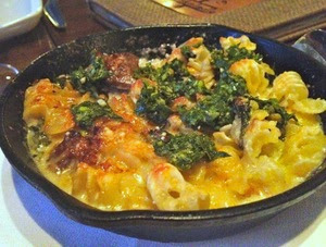 The baked radiatori ($16.75), Whisknladle’s play on mac and cheese, with lamb, Swiss chard, and salsa verde comes piled high in a huge cast iron skillet, and swimming in a pool of buttery cream sauce. The milk-braised lamb is insanely tender and the hints of mint and basil in the salsa verde nicely contrasts the bitter chard, making for a comforting, albeit rich, dish.