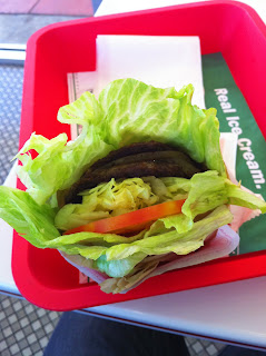 Protein Style - the specified burger wrapped in large lettuce leaves rather than on a bun.