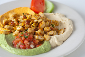 A must-have is the hummus with grilled chicken starter ($9.29), a huge plate of seasoned chicken and toasted pine nuts served with a trio of hummus - a traditional chickpea puree with tahini sauce, fresh garlic and lemon juice. Aside from the original, one hummus is flavored with roasted red bell peppers and the other with cilantro and jalapeno - my personal favorite. The homemade hummuses were smooth and creamy with light flavors that flawlessly complemented the savory, citrusy and spicy chicken, which is marinated overnight for very enhanced flavors. Served with two pitas, this dish could be a meal for two in itself! This appetizer definitely excited the palate and piqued everyone’s appetite.