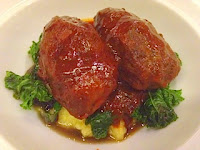One of the many specials posted to the chalkboard for the evening (usually about 3-8 special appetizers and/or entrees are featured per night) was the guinea fowl with fresh fava beans, faro cooked risotto-style, and assorted baby heirloom tomatoes drizzled with tart sour cherry sauce ($30). The skin was crisp, salty, and peppery – just like I like it; the breast was moist; and combined with the flavors of the cherry sauce and the faro, made for a well-balanced, satisfying, and sophisticated dish.