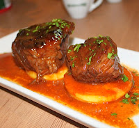 For our main, we each received the Brasato al Caffe' con Polenta, a sexy duo of red wine and Medaglia d'Oro braised beef served atop thin, circular and flavorful corn meal polenta slices. The dish was hearty and moist and the marinade permeated the meat so that it was flavored throughout.