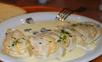 "FESTA! rivals some of the top Italian festivals in the world, including New York City's San Genarro Festival," stated Lofaso.Questions kept coming for Chef Antonia, but we were all there to eat as well. For our first course we chose between two pasta options. I chose the Ravioli al Caffe e Tartufo, consisting of hand-made Medaglia d'Oro ravioli filled with ricotta cheese and white truffle and served with a creamy grappa sauce. The dish was rich and comforting and eased me back to peaceful bliss after being all wound up from an aperitif of ice cold sweetened espresso.