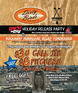 Dirty Birds in Pacific Beach is once again hosting a Rockaway, NY Hurricane Relief fundraiser this Thursday, December 20th, where proceeds from 7 pm to midnight will go towards the victims of Hurricane Sandy.