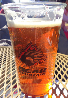 The next morning we arrived at Snow Summit in minutes, and parking was easy as pie. After securing lift tickets and snow blade rentals (also easy as pie), we headed up to the summit on one of the resort's high speed quads - a breathtaking ride. It was a beautiful sunny day, unlike any I can recall in all of my experiences skiing (and I've been skiing since I was 4 years old). Coverage was great, the snow was well groomed and icy areas were few and far between. Like the ride up, each run boasts a panoramic view of Big Bear Lake, the surrounding mountains, and bright blue skies contrasting the pure white snow. After a few relaxing runs down the Summit Run trail (see video below of me following Ness down), it was already past noon, so we decided to grab a couple of beers and take a moment to take it all in on the sprawling sun deck at the Bear Bottom Lodge at the base of the mountain.
