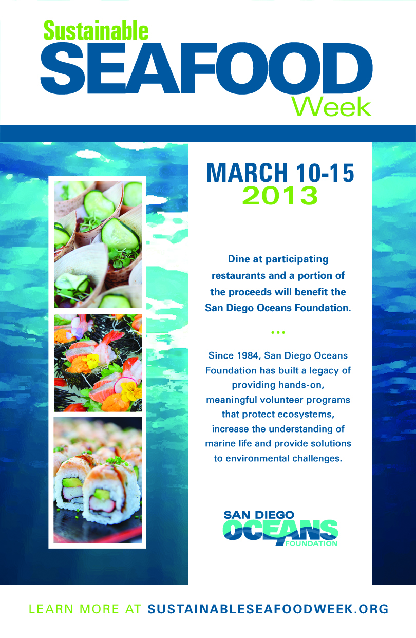 Shortly following the Sustainable Seafood Gala, from March 10th-15th, San Diego will be the location for Sustainable Seafood Week, which will unite restaurants committed to bringing attention to the sustainable seafood movement. Each restaurant agrees to feature a sustainable seafood plate or prix fixe menu and donate a portion of their profits from the dish to support the San Diego Oceans Foundation’s research and marine science education programs.