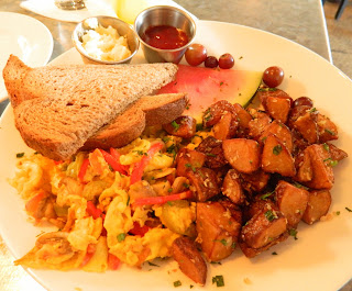 When I dine out, I seek aesthetic amazement - I want to be impressed by organization, size or simple beauty. Uptown Tavern successfully elicited this favorite feeling of mine on multiple occasions. They say that a meal is healthy if it shows a variety of color and the market vegetable scramble dish ($9.50) was huge and packed with vibrant colors. Pickled jalapenos, tomatoes, mushrooms and bell peppers heightened the flavor of perfectly scrambled eggs; garlicky, oniony, and buttery breakfast taters competed for plate space - hands down the best breakfast potatoes I have ever had. The scrambles’ ingredients are always market-fresh and change weekly, which we love for local sustainability purposes. Oh, and be sure to try the house jam on your toast, as it is sensationally smooth.