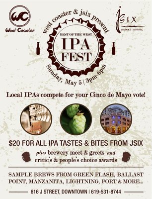 For more information, and to purchase tickets visit http://loungesixipafest.brownpapertickets.com or call 619-531-8744.
