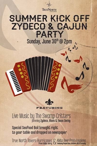 Get ready for a knee slappin’ good time at True North Tavern on Sunday, June 30 as they throw a Zydeco and Cajun Party to kick off the summer. Say it with us, “Laissez les bon temps rouler” (lay-zay lay bon ton rule-ay), which translated from Cajun-Creole speak means “let the good times roll” on this Sunday Funday in North Park.
