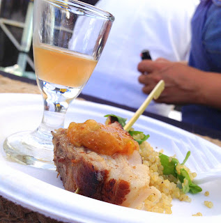 Organized by California Figs, the Les Dames d'Escoffier's San Diego chapter and the San Diego Public Market, the San Diego Fig Fest was actually the 10th reincarnation of the event, which has been held in Fresno the previous nine years. San Diego Public Market made the perfect venue for its entry into America's Finest City. White tents aligned in rows, shielding the chefs from the afternoon sun; live music entertained the crowd, who paraded through the aisles, nibbling bites and sampling wine, beer from Manzanita Brewing and even cocktails featuring fig-spiked vodka.