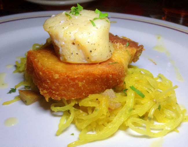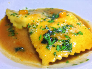 Mia Francesca showcased her use of Fall's favorite ingredient with a pumpkin-filled ravioli served in a shallow bath of browned butter sauce and veal reduction, and garnished with fresh tomatoes and pasta. The pumpkin was velvety and the brown butter sauce was rich and flavorful.