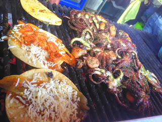 Our next stop was one of TJ's newest food incarnations, an upscale, indoor/mostly-outdoor food court aptly coined the Food Garden where the tagline is "Keep Tijuana Tasty," and that they do. The mastermind behind this new format food venue handpicks each vendor to fill the ten or so stands, ensuring that authentic, quality and delicious food is offered in this culinary enclave, creating a social setting wherein patrons can choose their preferred meal and mix and match as they please. The smells of charred octopus, freshly pressed tortillas, sizzling meats and grilled fish poured out and mixed together in a Fantasia-like symphony, tickling our noses and piquing our appetites. We indulged in a super flavorful, savory shrimp and New York Strip taco from La Taqueseria, the innards encased in crispy fried cheese, accompanied by a freshly pressed orange and ginger juice from neighboring stand La Barra (topped off with a bit more of that delicious Mezcal!).