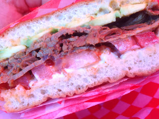 We piled back in the bus and headed for the best tacos al pastor in TJ at the famed Tacos El Franc, a popular late night eatery. The delicious scent of the gigantic, skewered tornado of meat, marinated in a red chili sauce wafted through the air, instantly prompting a drooling desire to indulge in the rotating spit of swine. The pork was moist, flavorful and delicious - a simple, yet satisfying curbside delicacy. Served with guacamole, onion and cilantro, these tacos are some of the most delicious we've had.
