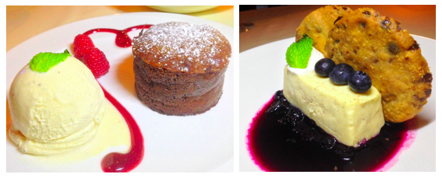 Our two desserts were each fabulous in very different ways. The Roy's Melting Hot Chocolate Souffle ($10.95) is stunning. The flourless chocolate cake is paired with vanilla bean ice cream and, once punctured, oozes with rich molten sweetness. The accompanying raspberry coulis is pure nirvana. This is one of the best versions of this classic dessert that we've experienced. We also received the vanilla bean cremeux ($8.95), served with white chocolate and lemon sable cookies and blueberry sauce. This dessert is velvety and luxurious, melting in your mouth, and the tart blueberry is the ideal accompaniment to the smooth vanilla creme.