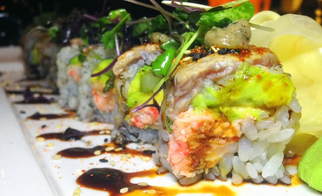 Next up we had the Lakanilau sushi roll ($16.95). This bad boy comes 8 pieces long, filled with snow crab, tempura asparagus, avocado, and topped with thin sliced Wagyu beef, sesame miso and truffled greens. This creation is a sublime mixture of surf and turf with the truffled micro greens adding a welcomed and refined pop of flavor.
