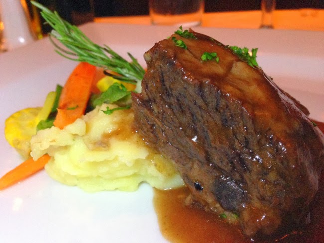 Alright, finally, and without further ado, our main course was the slow-cooked beef short rib ($27.50), a favorite at Romesco, and for good reason, as this plate of the most succulent, Cabernet sauce-glazed beef short rib comes atop braised fennel, mixed seasonal veggies and yukon gold potato puree for a rich, hearty, and simply perfect dinner. Paired with a Madera 5 Tempranillo-Cabernet blend, this course sent us into a euphoric state of fullness.