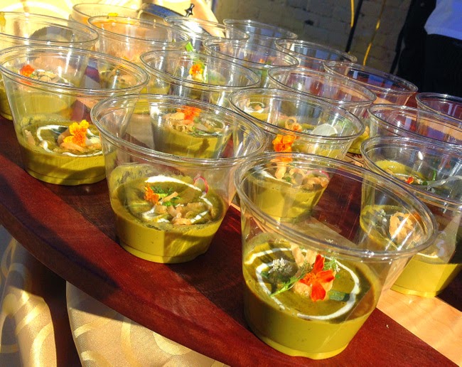 Bombay Bazaar began with a champagne toast by the evening's hostess Julie Darling, the founder and president of Just Call Us Volunteers, a 100% volunteer-run, non-profit organization that has served over 26,000 meals to San Diego's less fortunate since it's inception in 2005. Guests were then invited to enjoy the chefs' Indian-inspired offerings (full menu below). Highlights included Chef Chad White's perfectly spiced white murgh tikka mesquite chicken kebab and Sundara's authentic spread of chicken tikka masala, channa masala, tandoori chicken and papadum with chutneys, but in reality, there wasn't a bad bite to be had. In addition to cocktails from RX Bitters and Snake Oil Cocktails, URBN St. Brewing, which opens in El Cajon next month, poured their tasty IPA and Brown Ale, and Ballast Point Brewing came festively prepared with its curry spiced Indra Kunindra Export Stout.