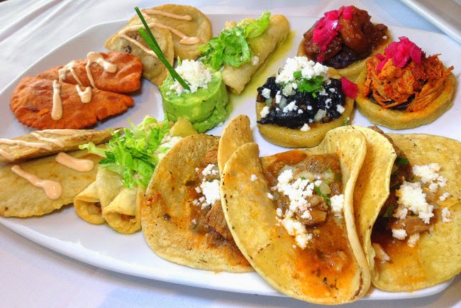 From the appetizers, the best has to be the Entremeses Surtidos ($21.95), a sampling that includes two shrimp and crab empanadas; three assorted sopecitos of cochinita (pork), cuitlacoche (corn 'mushroom') and shrimp in chipotle; three beef taquitos; four mini quesadillas (two with mushrooms, two with poblano pepper strips); four rolled taquitos stuffed with potato and homemade chorizo; and a mini stack of guacamole. The sopecitos are certainly the bell of the ball with the shrimp being the most delicious of the three.