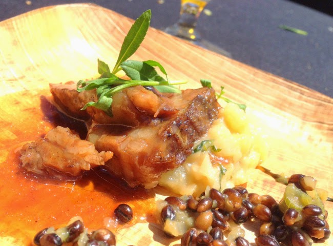 The Crossings Carlsbad: Chef Justin Cullimore - hops-cured pork belly-pickled Fresno Chili, quinoa salad, smoked paprika vinaigrette paired with Stone Sublimely Self-Righteous Black IPA