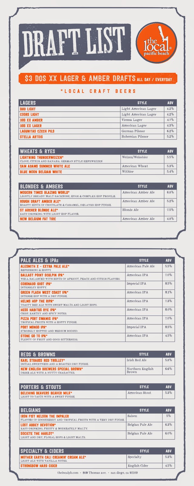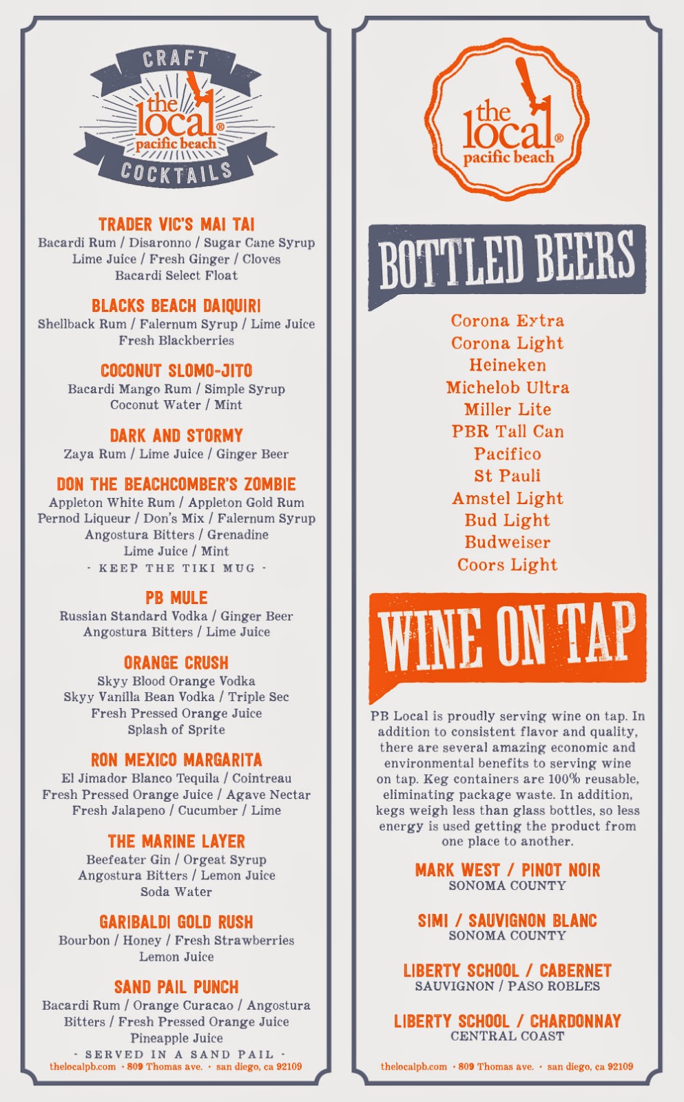 impressive list of San Diego’s best local craft brews, embracing the rich beer culture of America's Finest City. Numerous high definition TVs display the biggest local, regional, national and international sporting events, and The Local PB plans to regularly showcase local acoustic talent by hosting live performances.