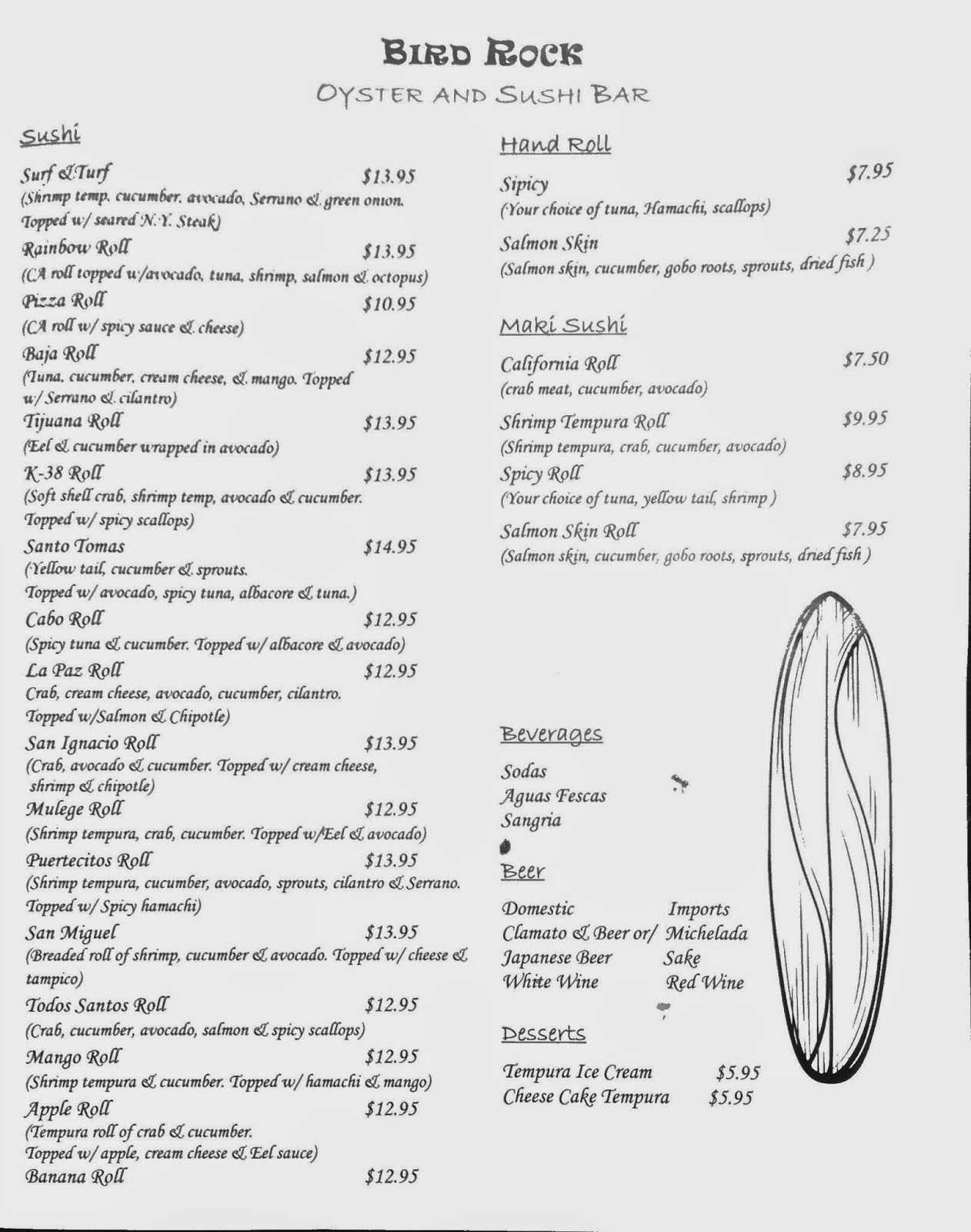 Bird Rock Oyster and Sushi Bar is located at 5752 La Jolla Blvd. and is currently open for lunch and dinner Monday through Friday. For more information, visit birdrockoystersushibar.com.
