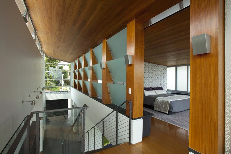 · A second Safdie Rabines Architects home, located in La Jolla, and nicknamed Casa Diagonal. This custom home is perched on a steep hillside, and incorporates diagonally constructed structures to create indoor/outdoor terraces on each level with panoramic views of the Pacific.