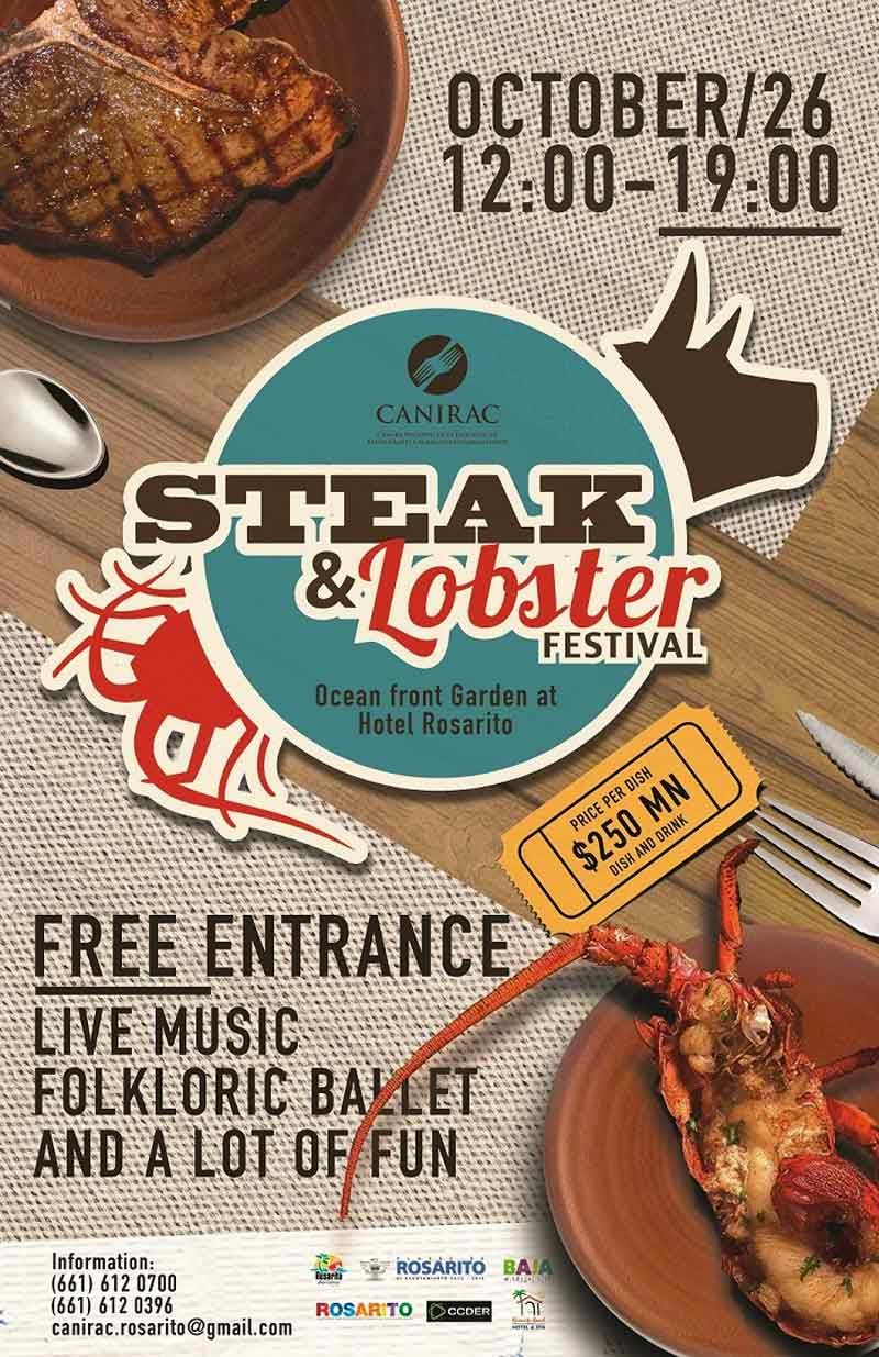 The Rosarito Beach Hotel Steak & Lobster Festival is organized by CANIRAC, the Rosarito restaurant association. Among confirmed restaurants participating are Hotel Las Rocas, La Guerita, Azteca Restaurant from the Rosarito Beach Hotel, Mi Jacalito, Los Molcajetes and Puerto Nuevo II. Tickets for food can be bought in advance at participating restaurants or at the festival.