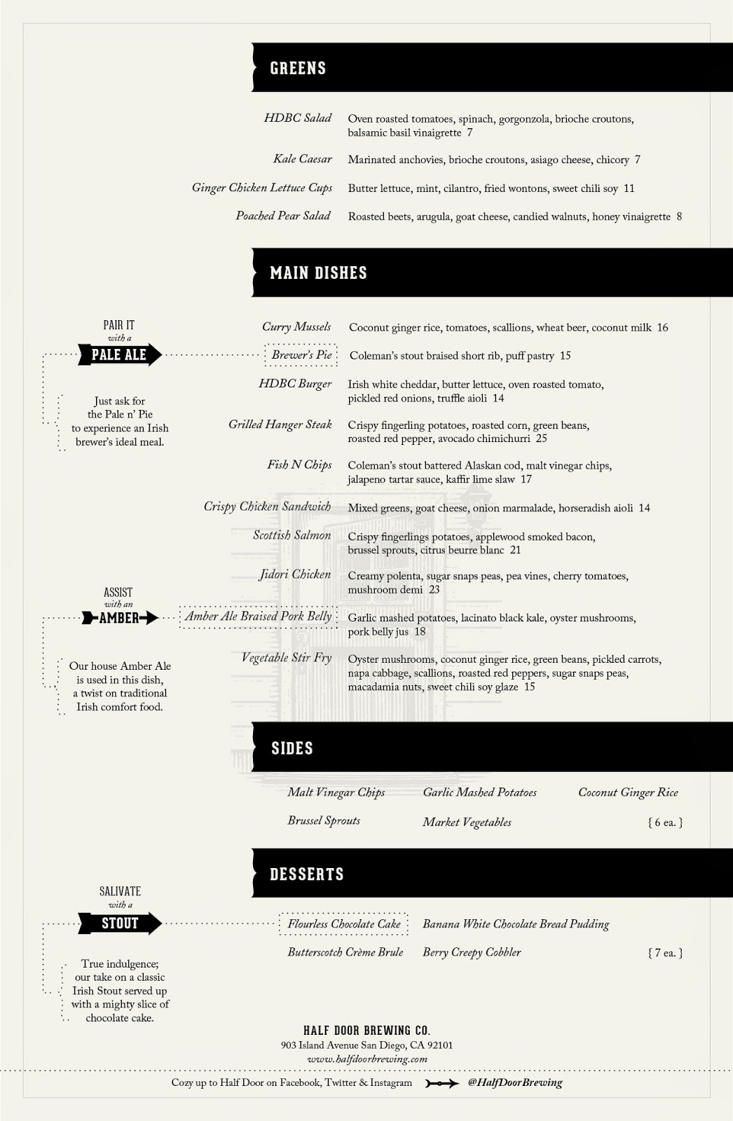 Half Door Brewing Co. is currently open Sunday through Saturday from 5pm to 2am, but will soon offer lunch hours and possibly brunch. Check out the full dinner menu, the anticipated lunch menu and more photos of the restaurant below, and for more information, visit