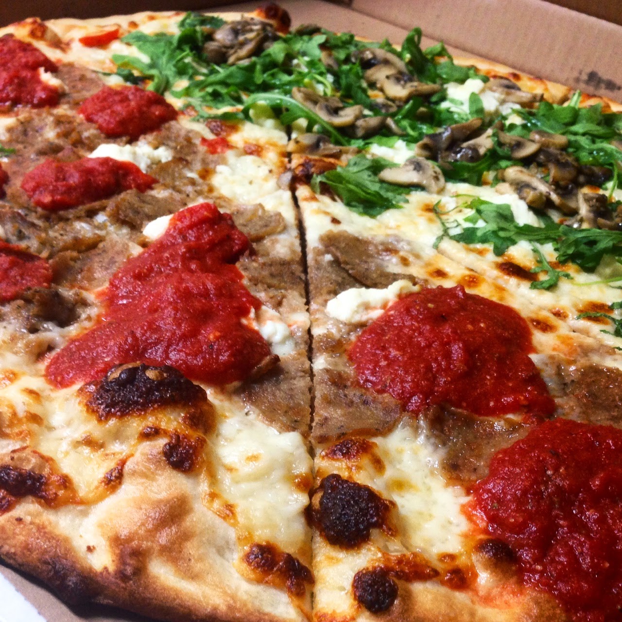 Meatball and Ricotta Pizza from Landini's in Little Italy - In 2014, Landini's took over as our go-to spot for pizza. We have no complaints on any pie we've ordered, but it's the meatball and ricotta pie that keeps us coming back. Thin slices of meatball, mounds of ricotta cheese and globs of some of the finest red sauce we've had at any pizzeria make this quite possibly the top pizza in all the city.