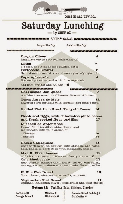 Popular Saturday Lunching items include the the Torta Azteca - a dish comprised of corn tortillas layered with house made mole and chicken and garnished with Cotija cheese, shaved onions, and Chile oil, as well as the Oz's Machacado with beef brisket sauteed until crispy, served with salsa, two eggs over medium and house made flour tortillas.