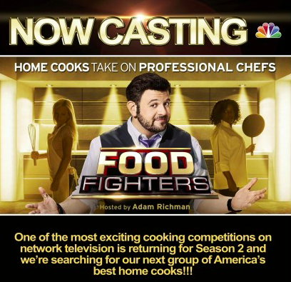 NBC's exciting cooking competition show, Food Fighters, is returning for Season 2 and they are in search for the next lineup of America’s best home cooks (ages 9 and up) and professional chefs to compete in front of former-Man vs. Food star Adam Richman! Think you have what it takes, there is an open casting call this Saturday, March 28, from 10am-3pm at Embassy Suites in Downtown San Diego!