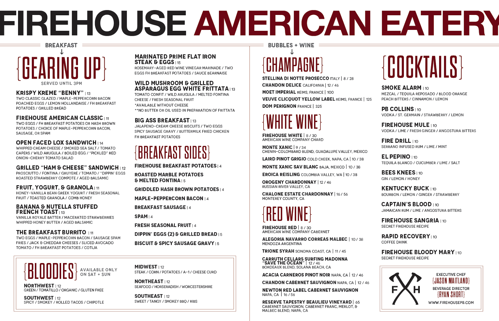 Firehouse will continue to feature classic American favorites such as delectable burgers with a twist and buttermilk fried chicken, but will elevate the mains with entrees including hand made pappardelle pasta with wild mushrooms, sherry, parmigiano-reggiano, truffle essence, shaved San Joaquin gold and truffle salt.