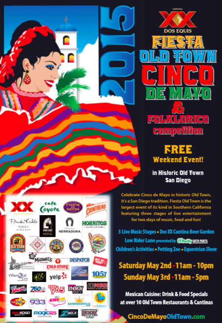 Each year thousands flock to Old Town, San Diego’s oldest, historic neighborhood, to take a step back in time and celebrate! The 2015 Dos XX Fiesta Old Town Cinco de Mayo will be celebrating 32 years of tradition packed with activities for all ages as the Old Town neighborhood is transformed into the largest Cinco de Mayo celebration north of the border, filled with mariachis, cervezas, great food, and more. This free family-friendly festival takes place on Saturday, May 2, from 11am to 10pm, and Sunday, May 3, from 11am to 5pm.