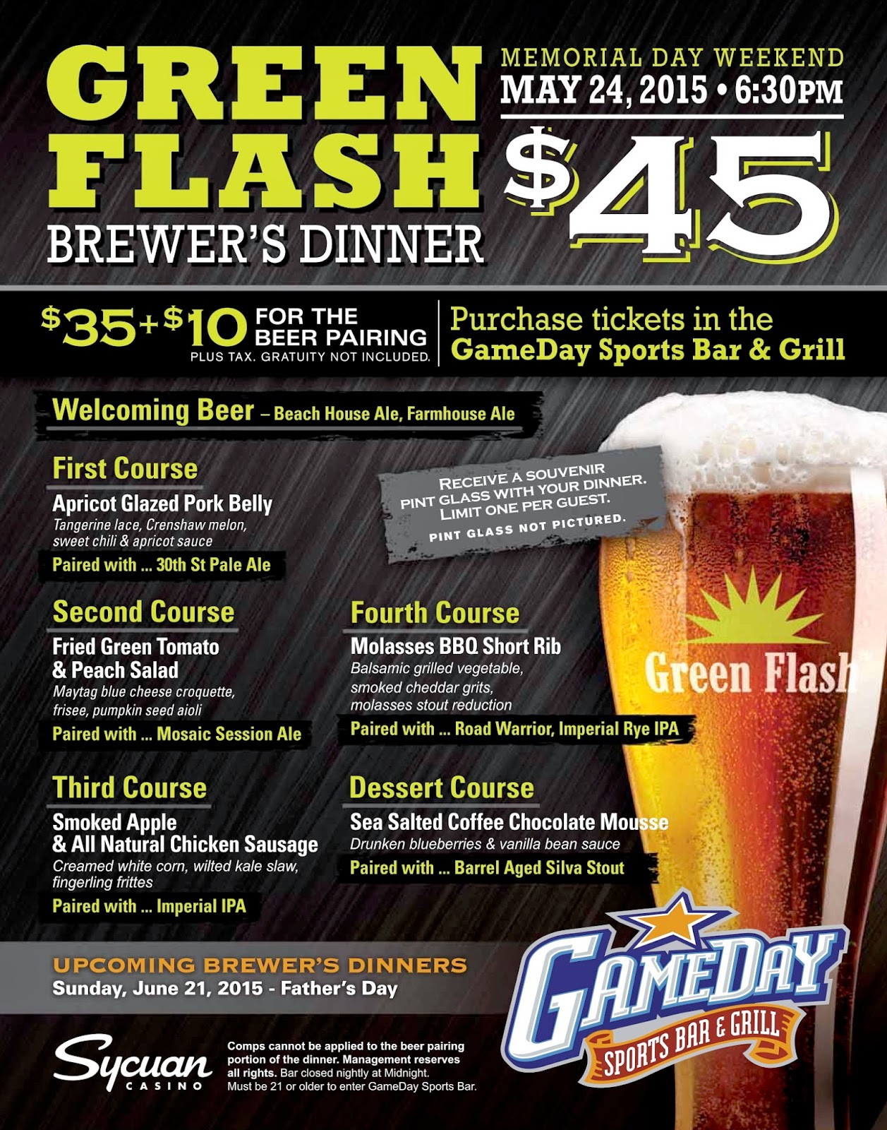 Green Flash & Sycuan Casino Create Exclusive Memorial Day Weekend Brewer's Dinner On Sunday, May 24 | Enter To Win 2 Passes To Attend