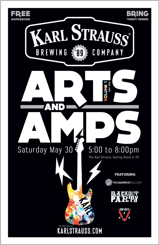 Admission to Arts & Amps is free and open to the beer imbibing public (21+). Karl's Pacific Beach tasting room is located at 5985 Santa Fe Street. For more information, visit karlstrauss.com.