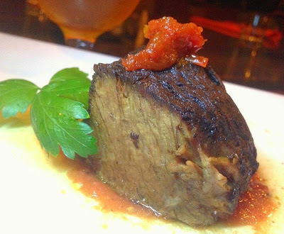 We participated in Kitchen 4140's last beer pairing dinner, entitled 'Steak & Strauss,' with Karl Strauss Brewing this past March. By 'participating,' I mean devoured seven incredible, steakhouse-style courses and as many pints as we could put down, including an earth-shattering steak-flavored beer brewed specially for the occasion. Frequently with beer pairing dinners, dishes are smaller portions as well as the beer pours, but at Kitchen 4140, we were given full portions for each course. Our dishes were as follows, each served with a pint or goblet of the paired beer: