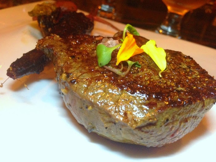 | Smoked rosemary rubbed lamb with crispy polenta and candied kumquats |