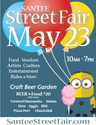 More than 30,000 visitors are expected to enjoy samples from local craft breweries, live music and entertainment, a crafter row and artist alley, 300 food and vendor booths, and carnival rides and games for the family at the 7th annual Santee Street Fair and Craft Beer Festival on Saturday, May 23, from 10am to 7pm. The annual street fair will be a celebration of the Santee Chamber's 60th anniversary and will have a 1950's theme with a vintage carnival, a hula hoop contest, and an auction of a 1971 Camaro. You know it - as usual, we're giving away more than just information - enter to win 2 tickets to the Craft Beer Garden!