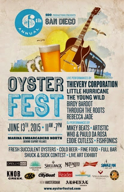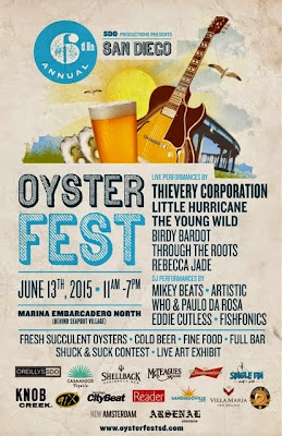The 6th Annual San Diego OysterFest returns to the picturesque Marina Embarcadero North by Seaport Village on Saturday, June 13, from noon to 7:30pm for a day filled with the three essentials for a great time - booze, music, and food. This year, the festival offers live bands including headliner Thievery Corporation, as well as craft beer, wine and cockails, as well as plenty of fresh oysters and food offerings from a variety of San Diego eateries. This event spotlights some up and coming bands and entertainers in a festival atmosphere on the beautiful San Diego Bay. We have two backstage passes to the festivities that we're giving to one lucky reader, which usually includes snacks, private bathrooms and an open bar. Read on and be sure to enter!