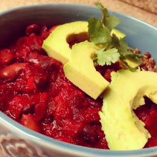 | Beet and bean chili with red quinoa made in the SanDiegoVille kitchen |