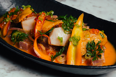 On our server's recommendation, we ordered the carrot aguachile special from the raw bar, which included local tuna and Baja luna scallops in a carrot-ginger juice with ghost chilis, cucumber, cashews, carrot slivers and smoked Steelhead roe. The dish presented an adventure as we skipped around the plate, forking uniquely delicious bites with each of the diverse yet complimentary ingredients. The light and refreshing carrot-ginger gazpacho presented a nice zing that allowed us to overlook the uneven knife work on the crudo.