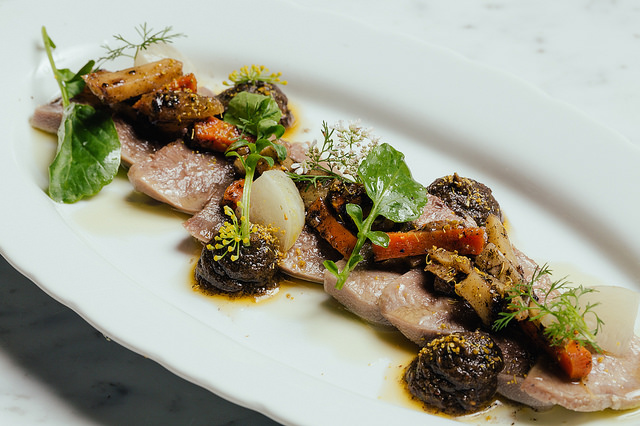 We were excited to try one of the entrée options, as they are all cooked in part using a specially designed Caja China-type roasting box made by our friend and colleague Gustav Anders Rooth of Planet Rooth Design Haus. We loved the albondigas, crispy brisket and short rib ($24) with ayocote beans caldillo, chochoyones, avocado leaf and pickled chayote squash, and although the meatballs were a bit on the dry side, the flavors were all there to make this dish exceptional and home-y in all the right ways.