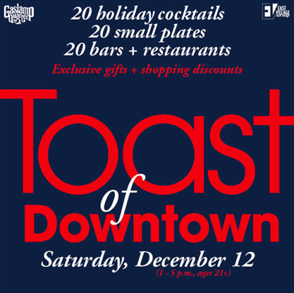 Tickets to the Toast of Downtown are only $20 in advance or $30 the day of the event. This event will be the perfect way to spend an afternoon festively feasting and imbibing while grabbing gifts for your loved ones. Festive attire is encouraged! For more information, call (619) 233-5008 or visit toastofdowntown.com.