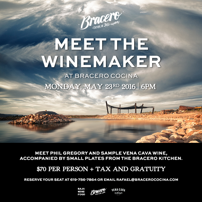 Bracero’s Meet the Winemaker dinner is back! On Monday, May 23, Bracero Cocina de Raiz will offer diners a unique opportunity to meet Phil Gregory of Vena Cava Winery located in Valle de Guadalupe. Bringing the essence of Valle de Guadalupe to the city of San Diego, this wine tasting experience is one not to miss.