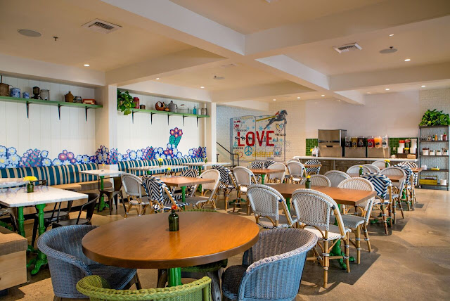 The Flower Child menu is designed to offer a healthy and balanced dining experience with a selection of organic, gluten-free, vegetarian and vegan items for lunch and dinner seven days a week and breakfast on weekends. Much of the menu is mix-and-match style, allowing guests to select their favorite combination of seasonal vegetables, fruits, and grains such as spicy Japanese eggplant (with Thai basil and cashew) and optional proteins like grass-fed steak and organic non-GMO tofu. Guests will find a variety of salads like the organic kale (pink grapefruit, organic apple, black currant, smoked almond, white cheddar, apple cider vinaigrette), bowls like the Mother Earth (with ancient grains, sweet potato, Portobello mushroom, avocado, cucumber, broccoli pesto, leafy greens, red pepper miso vinaigrette, hemp seed), whole grain pita wraps baked in-house daily like the Flying Avocado (with smoked turkey, gouda, romaine, tomato, avocado hummus), gluten-free desserts, and an ever changing iced tea and lemonade station where seasonal flavors rotate. Breakfast will also be served on weekends starting at 8am, including items such as a quinoa breakfast burrito, vegan hash, and spiced maple porridge. There will also be a special selection of morning beverages like the Liquid Sunshine (coconut water, carrot, orange, ginger, turmeric), organic coffee, and fresh squeezed citrus juice.