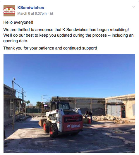 Extremely popular K Sandwiches burnt to the ground in August 2015 after an oven fire caused $1.5million in damages. Longtime fans feared that it would never reopen, but the Clairemont Mesa-based Vietnamese sandwich shop took to social media this week to announce that they will rise from the ashes and have begun the process of rebuilding, hoping to reopen by year's end.
